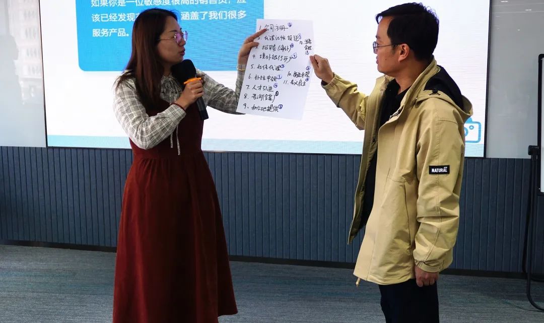 互動環節的(de)(de) “企業(ye)出(chu)海方(fang)案(an)大(da)比(bi)拼”,員工爭分奪秒查閱資料(liao)、熱烈研(yan)討,制定(ding)涵蓋市場分析、營銷策略、風險(xian)應對等內(nei)容的(de)(de)出(chu)海方(fang)案(an)。各小組方(fang)案(an)亮點(dian)頻出(chu),有(you)的(de)(de)巧用本地化營銷打開市場,有(you)的(de)(de)針對潛(qian)在風險(xian)制定(ding)詳(xiang)細預(yu)案(an),黃敏華講師認真聆聽并逐一點(dian)評(ping),給(gei)出(chu)專業(ye)優化建議。