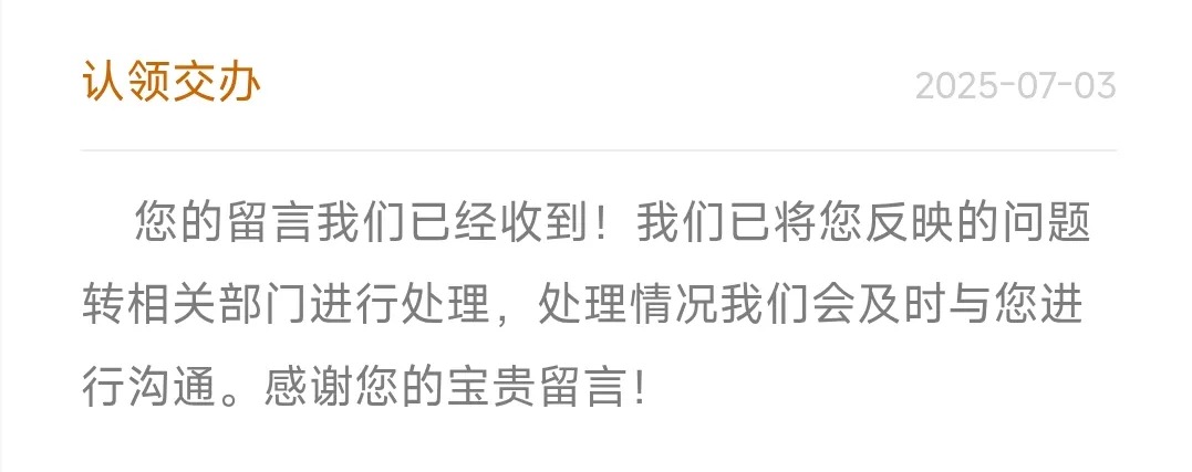 對此,官方回復已將(jiang)其所反映問題轉交相(xiang)關(guan)部門處(chu)理,目前該建(jian)議(yi)仍處(chu)于(yu)“辦(ban)理中”狀態。