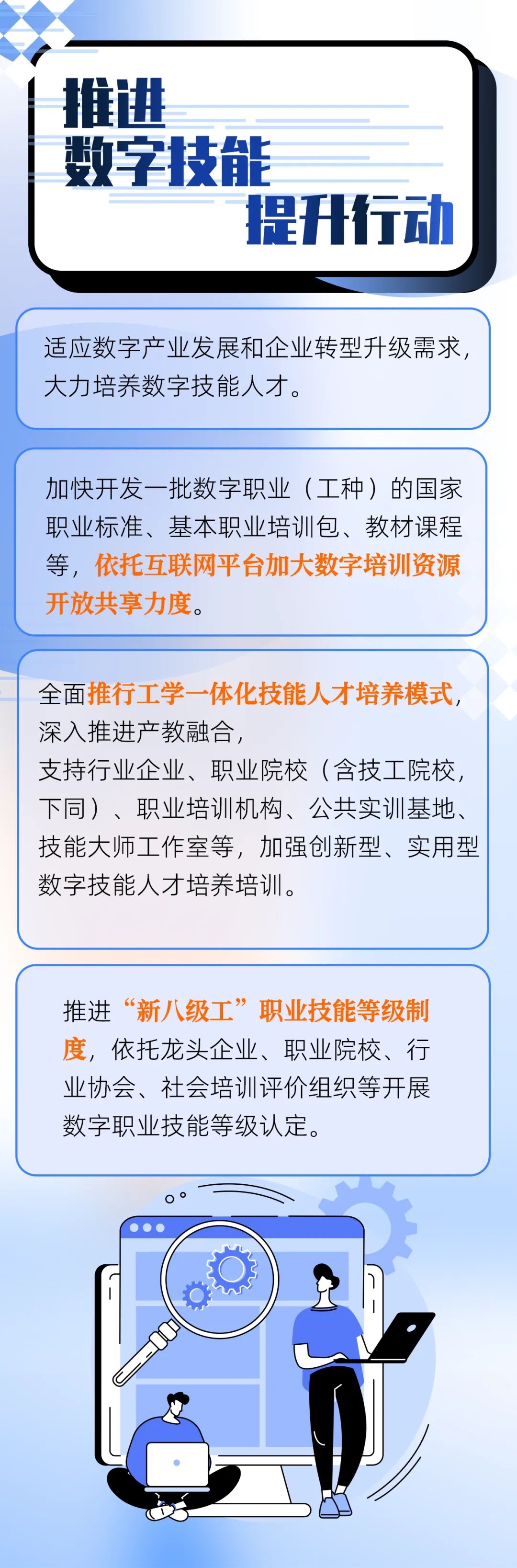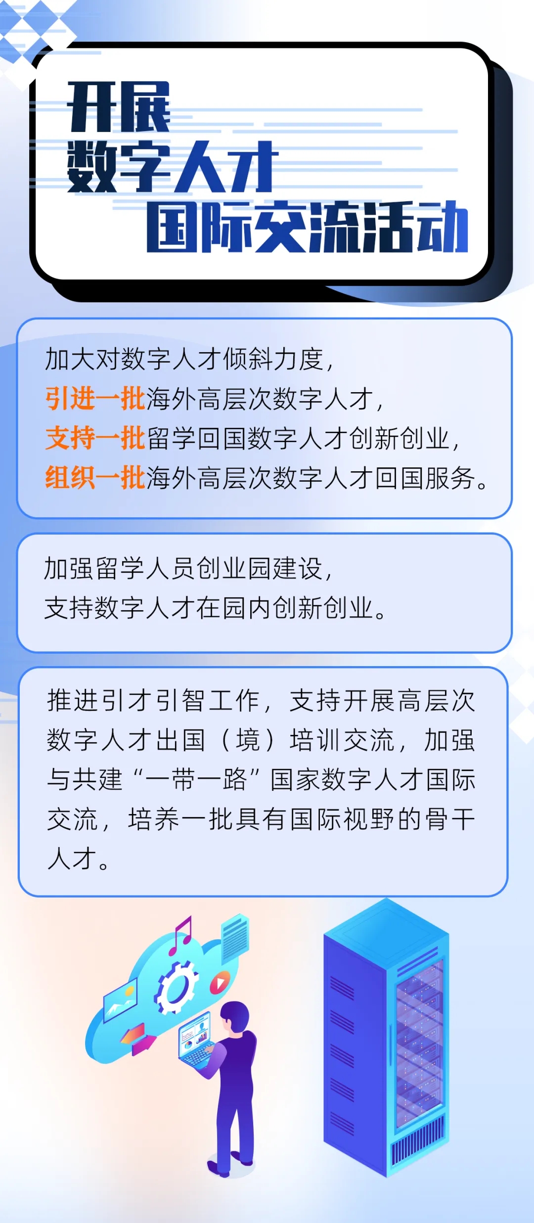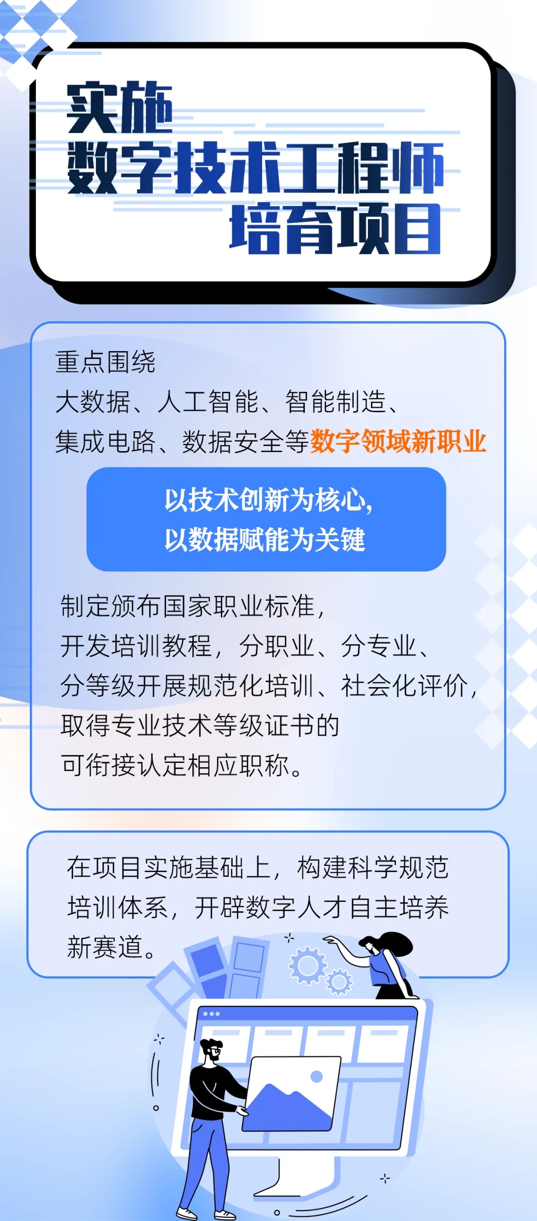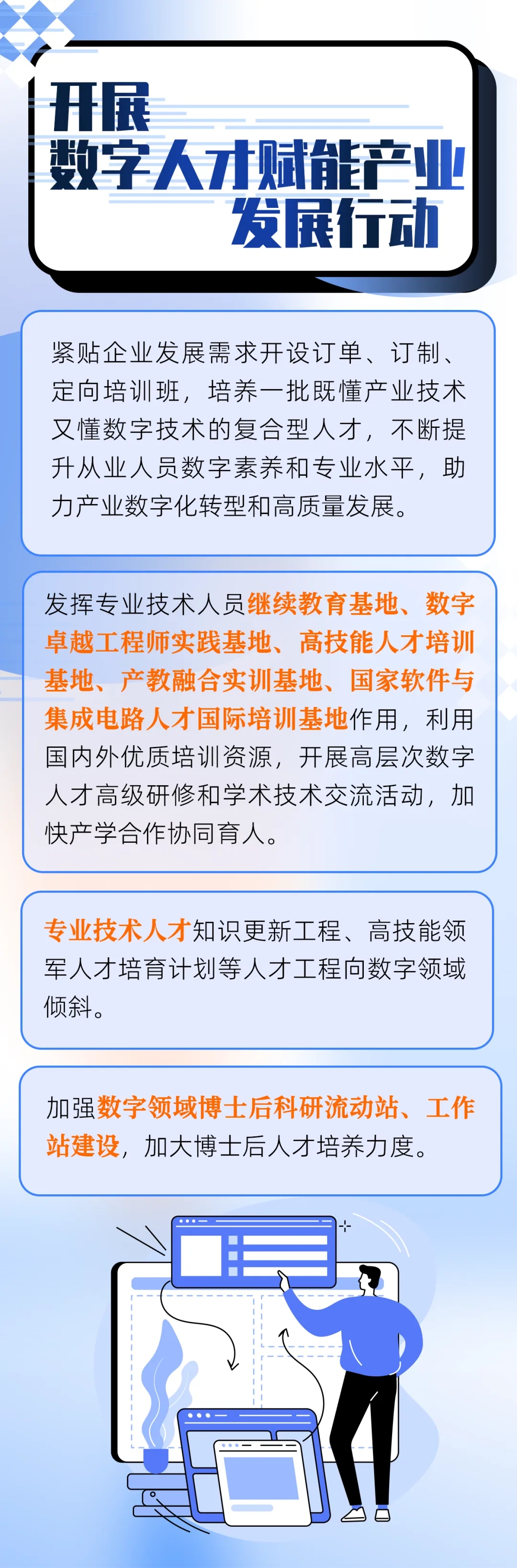 近日(ri),人(ren)(ren)力資源社會保(bao)障部(bu)、中(zhong)共(gong)中(zhong)央(yang)組織部(bu)、中(zhong)央(yang)網信辦、國家(jia)發(fa)展改革委、教育部(bu)、科技部(bu)、工業和信息化(hua)部(bu)、財(cai)政(zheng)部(bu)、國家(jia)數(shu)(shu)據局等(deng)九部(bu)門印發(fa)《加(jia)快數(shu)(shu)字(zi)(zi)(zi)人(ren)(ren)才培育支撐數(shu)(shu)字(zi)(zi)(zi)經濟(ji)發(fa)展行動(dong)方案(2024-2026年)》,緊貼數(shu)(shu)字(zi)(zi)(zi)產業化(hua)和產業數(shu)(shu)字(zi)(zi)(zi)化(hua)發(fa)展需要(yao),用3年左右時間,扎實開展數(shu)(shu)字(zi)(zi)(zi)人(ren)(ren)才育、引、留、用等(deng)專(zhuan)項行動(dong),增加(jia)數(shu)(shu)字(zi)(zi)(zi)人(ren)(ren)才有效供給,形成數(shu)(shu)字(zi)(zi)(zi)人(ren)(ren)才集聚效應(ying)。